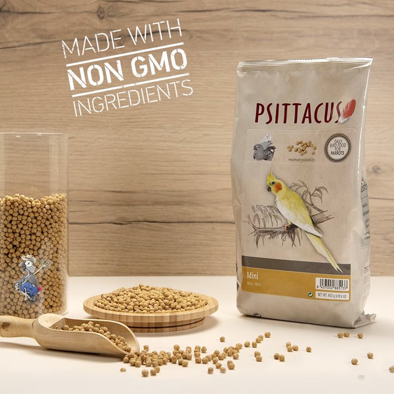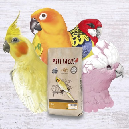 Ideal for small-sized species (Conure / Caique / Galah / Cockatiel) which, in the wild consume mostly seeds with low fat levels. Daily intake ranges from 9-15 % of the animal’s body weight. For instance, a cockatiel will consume between 7-15 g. Environmental ambient temperature significantly influences intake. Analytical constituents: Crude protein 15.1 %, Crude fat 7.5 %. Packaging: 450 g